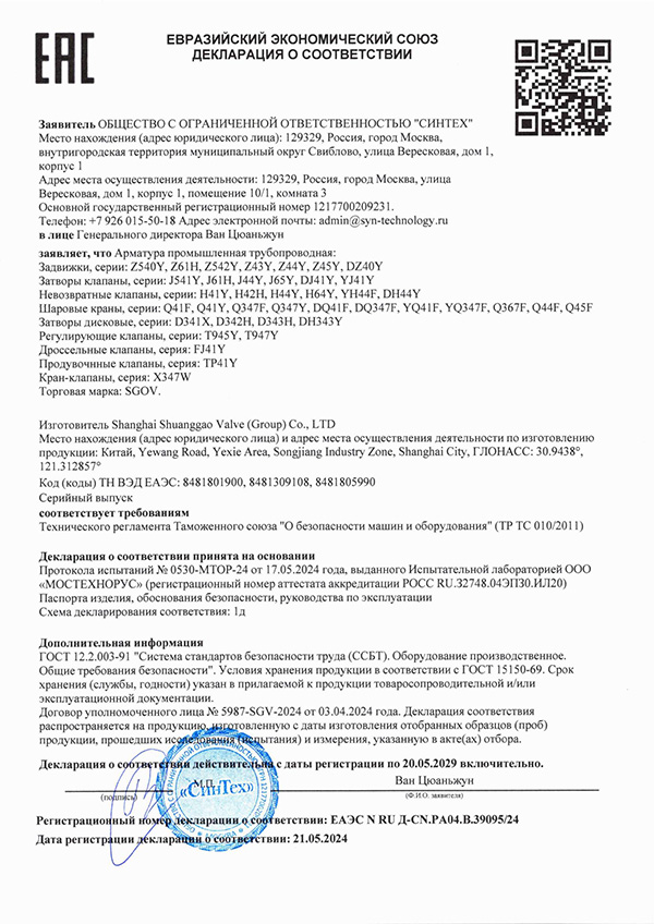 雙高閥門獲得俄羅斯EAC海關(guān)聯(lián)盟認(rèn)證